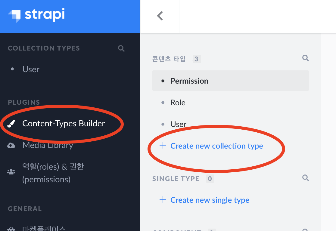 - Content-Types Builder메뉴 클릭