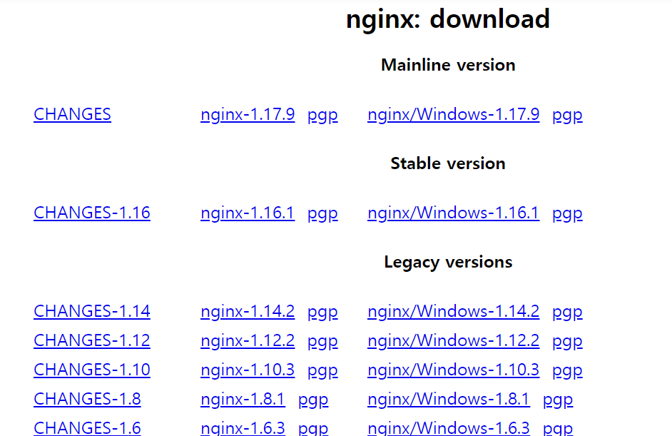 - 아래와 같은 Download page를 보면 Mainline version과 Stable version 그리고 이전 버전인 Lagacy versions가 존재 한다.