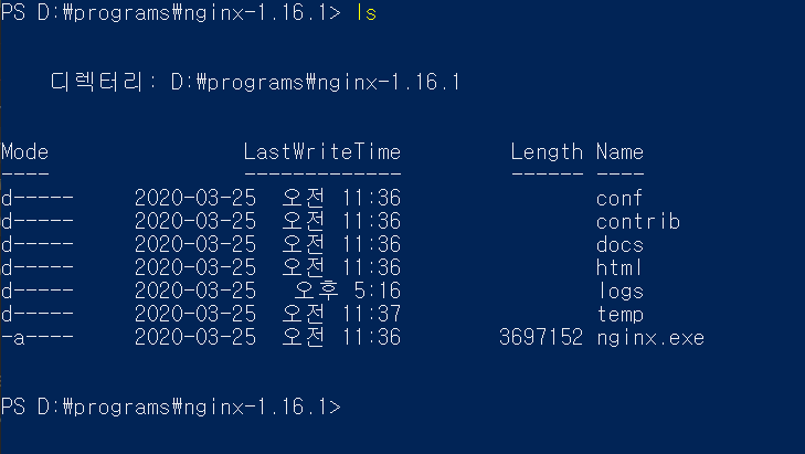 현재 nginx의 설정되는 directory의 path기준은 nginx.exe가 존재하는 경로 입니다.