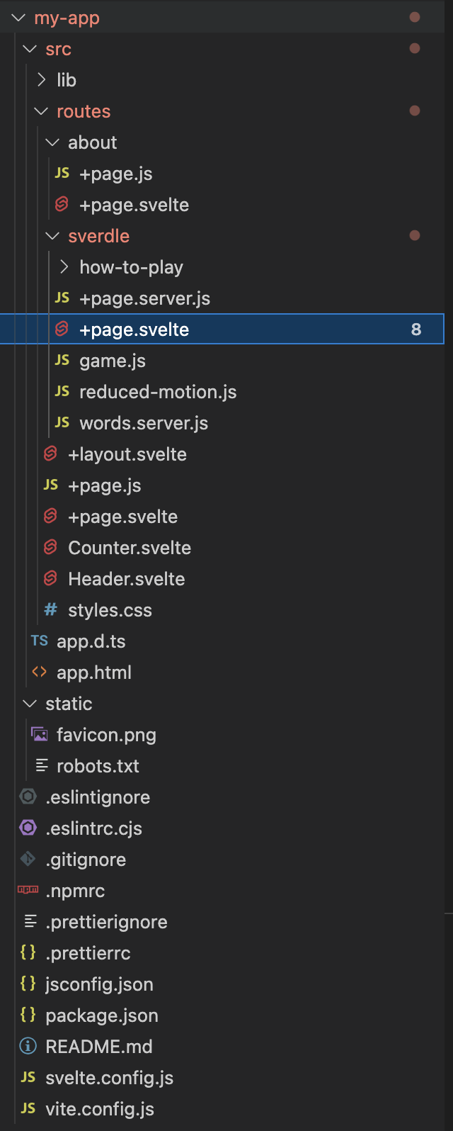 - Svelte ๋ฌธ๋ฒ ์์ฒด๊ฐ ๋ณ๊ฒฝ๋ ๋ถ๋ถ์ ๋ง์ด ์์ง๋ง, ์ ์ฒด์ ์ธ ํ๊ฒฝ๊ณผ build ๋ฐฉ์, route ์ฌ์ฉ๋ฒ๋ฑ์ ๋ํด ๋ง์ ๋ถ๋ถ ๋ณ๊ฒฝ์ด ์์์ต๋๋ค.