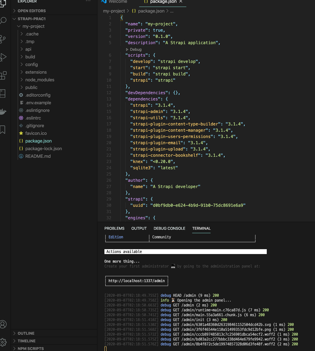 - 위와 같은 방식으로 mysql도 설정이 가능하다. 설정 후 다시 strapi를 실행 시키면(`npm run develop`) 설정된 디비에 새로운 데이터베이스와 테이블을 생성할 것이다.